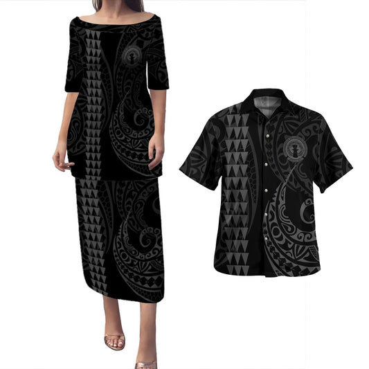 Northern Mariana Islands Combo Puletasi And Shirt Kakau Style Grey