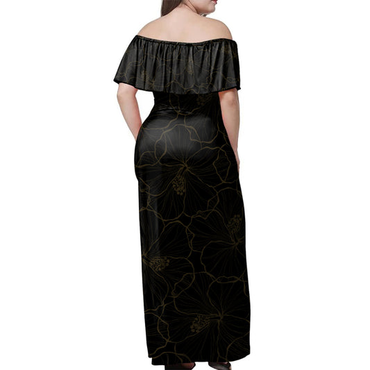 Chuuk Polynesian Woman Off Shoulder Long Dress - Lauhala Coat Of Arms