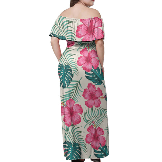 Hawaii Polynesian Woman Off Shoulder Long Dress - Polynesian Hibiscus Flower