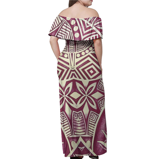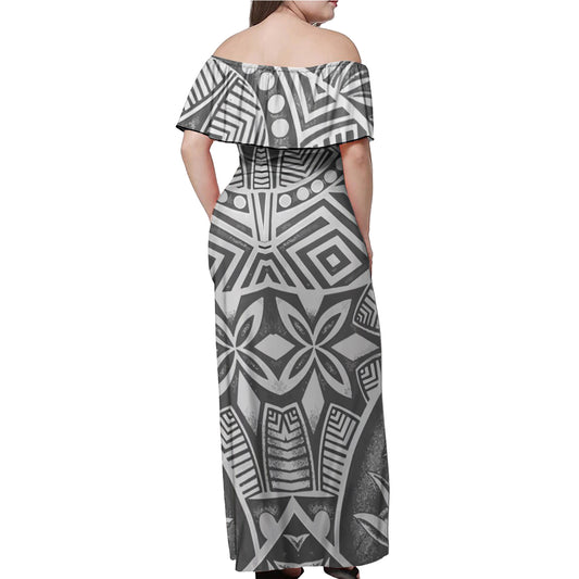 Polynesian Woman Off Shoulder Long Dress - Polynesian Pattern 24