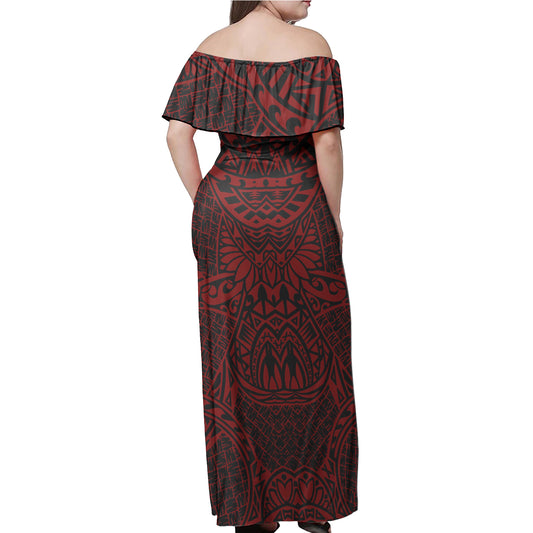 Polynesian Woman Off Shoulder Long Dress - Polynesian Pattern 23
