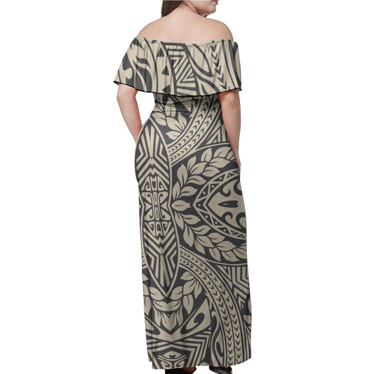 Polynesian Woman Off Shoulder Long Dress - Polynesian Pattern 07