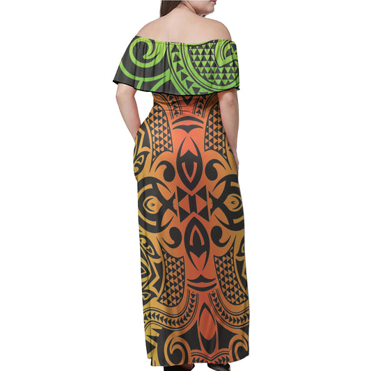 Samoa Off Shoulder Long Dress Polynesian Tribal Tattoo Tropical