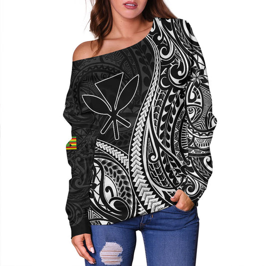 Hawaii Off Shoulder Sweatshirt Polynesian Tribal Tattoo Island Spirit Style