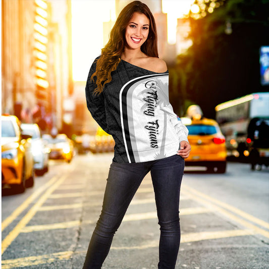 Fiji Off Shoulder Sweatshirt Rugby Masi Flying Fijians Style