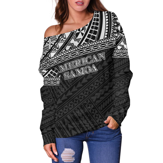 American Samoa Off Shoulder Sweatshirt Polynesian Curve Style