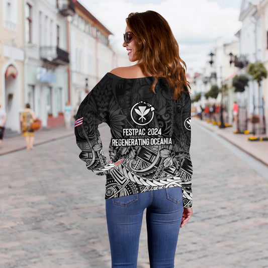 Hawaii Off Shoulder Sweatshirt FestPAC 2024 Polynesian Pattern Design