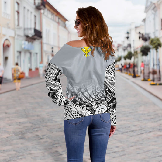 Hawaii Off Shoulder Sweatshirt Kanaka Kakau Polynesian Tattoo