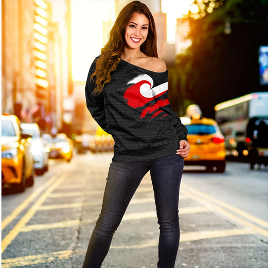 New Zealand Off Shoulder Sweatshirt Tino Rangatiratanga Maori Crack Style