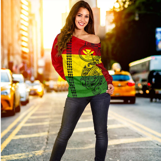 Hawaii Off Shoulder Sweatshirt Kanaka Tribal Tattoo Concept