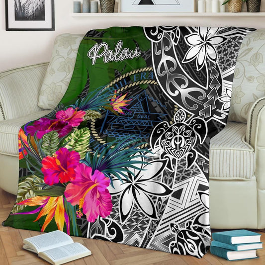 Palau Polynesian Premium Blanket - Manta Ray Tropical Flowers
