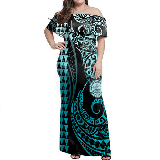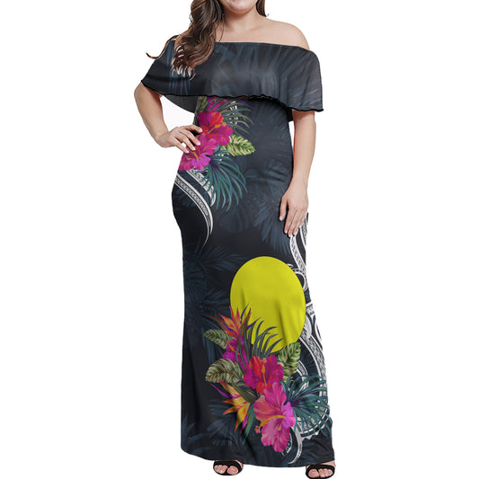 Palau Combo Off Shoulder Long Dress And Shirt Polynesian Patterns Plumeria Flowers Special Style