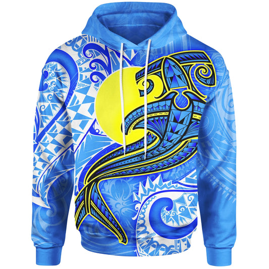 Palau Polynesian Hoodie - Tribal Wave Tattoo Flag Style