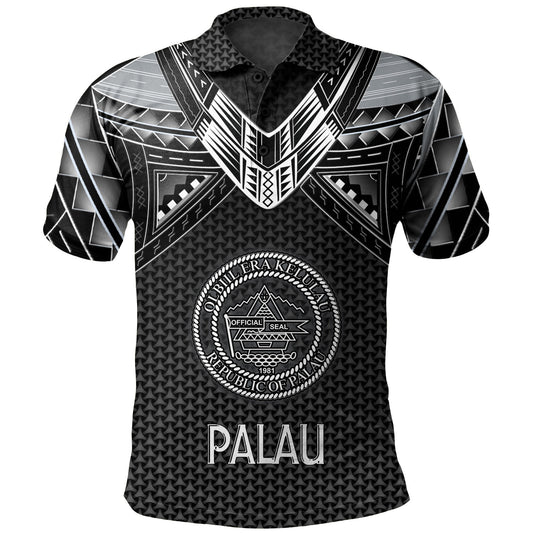 Palau Polo Shirt Coat Of Arm Lauhala Gray Circle