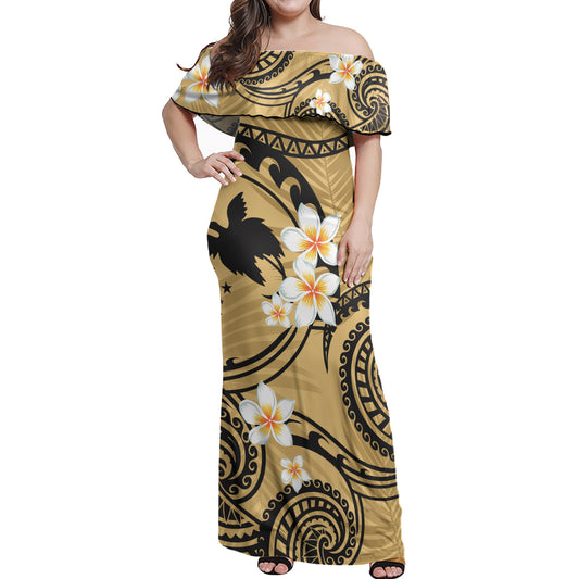 Papua New Guinea Women Off Shoulder Long Dress - Plumeria Tribal