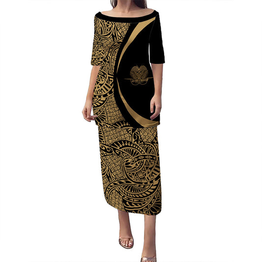 Papua New Guinea Seal With Flag Polynesian Pattern Women Off Shoulder Long Dress