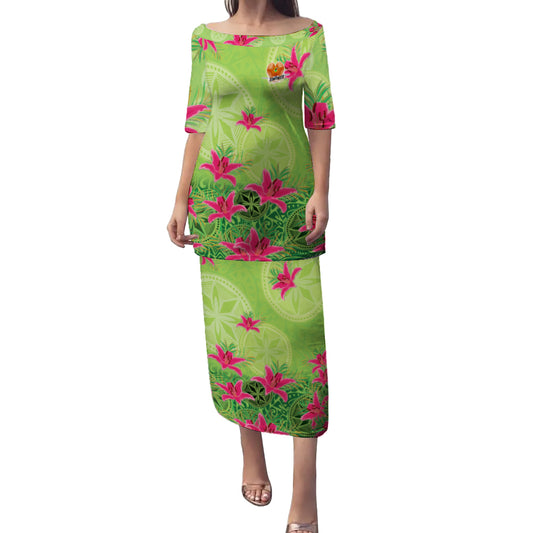 Papua New Guinea Puletasi Lilies With Polynesian Pattern