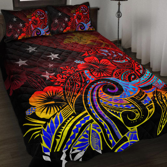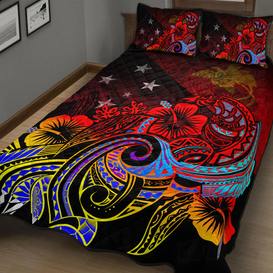 Papua New Guinea Quilt Bed Set Birds Of Paradise With Flag Color Style