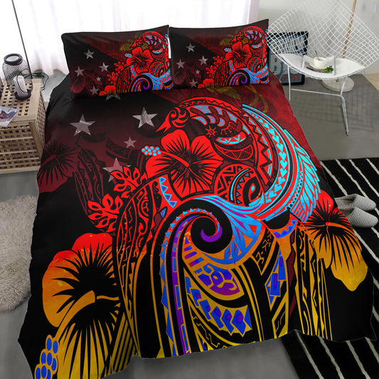 Papua Polynesian Bedding Set - Tribal Flower With Special Turtles Red Color
