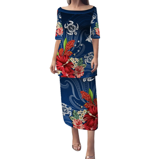 Papua New Guinea Combo Puletasi And Shirt Flower And Turtle