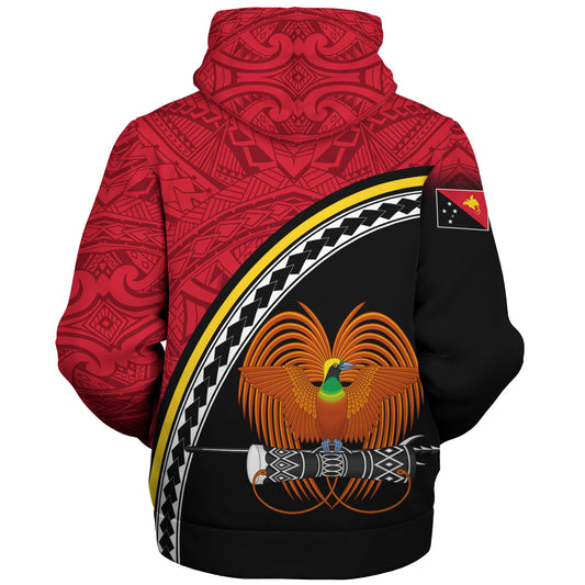 Papua New Guinea Sherpa Hoodie Polynesian Tattoo Flag And Coat Of Arms