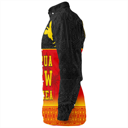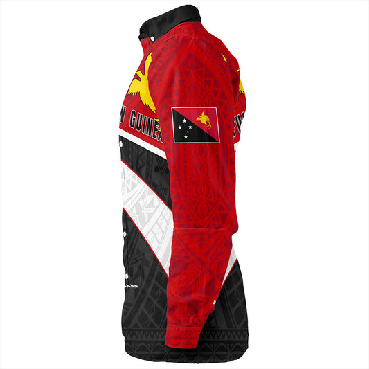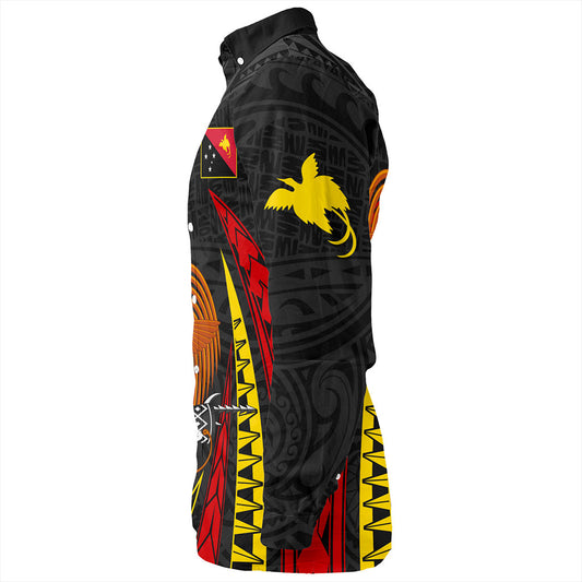 Papua New Guinea Long Sleeve Shirt Polynesian Tattoo Flag And Coat Of Arms