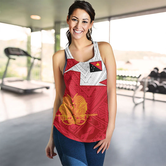 Papua New Guinea Women Tank Polynesian Tattoo Flag And Coat Of Arms