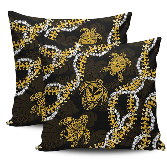 Hawaii Pillow Cover Turtle Hibiscus Gold