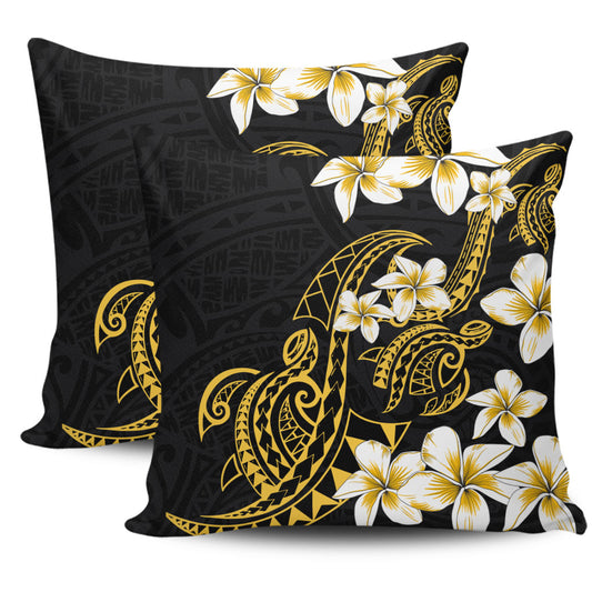 Hawaii Pillow Cover Turtle With Plumeria Flowers