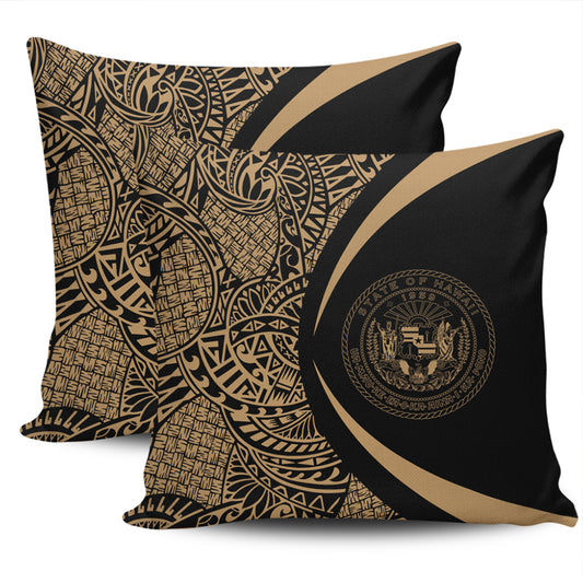 Hawaii Pillow Cover Coat Of Arm Lauhala Gold Circle
