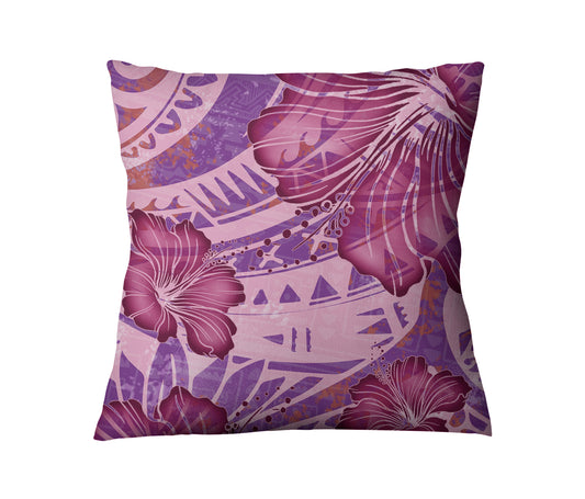 Hawaii Pillow Cover Polynesian Motif Purple Hibiscus
