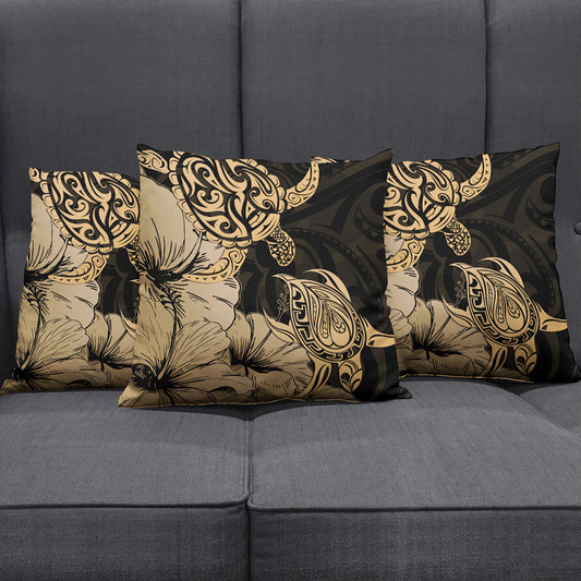 Hawaii Turtle Pillow Cover Polynesian Hibiscus Art Gold