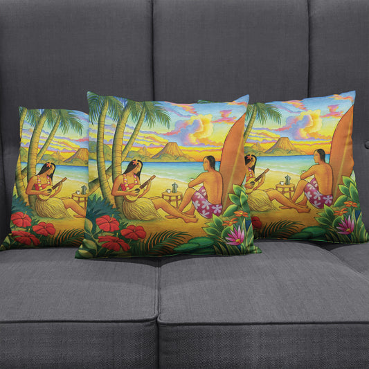 Hawaii Pillow Cover Turtle Hibiscus Waves Polynesian