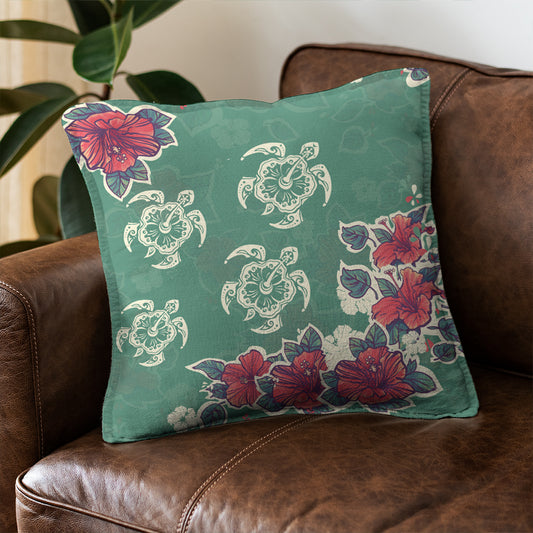 Hawaii Pillow Cover Sea Turtle Hibiscus