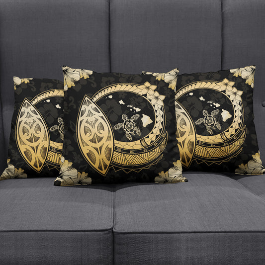 Hawaii Pillow Cover Map Honu Hibiscus Polynesian Gold