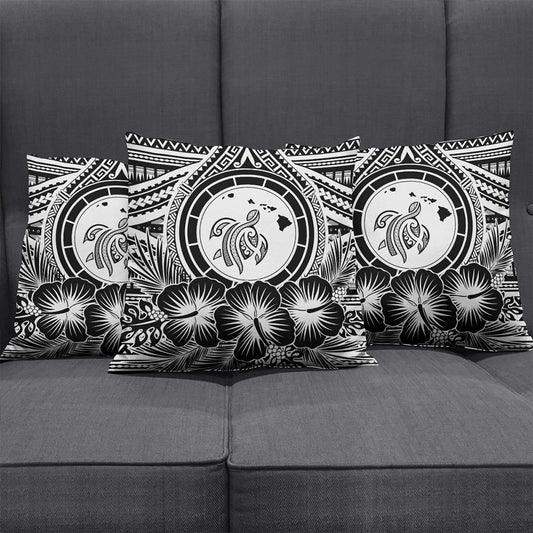Hawaii Pillow Cover Map Honu Hibiscus Polynesian White
