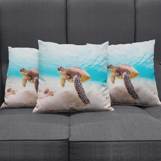 Hawaii Pillow Cover Plumeria Polynesian Deep Sea Turtle