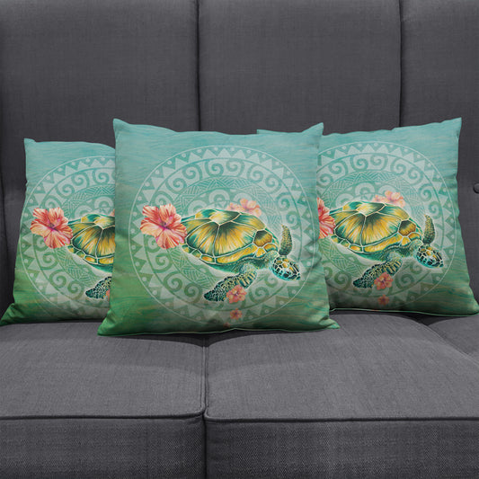 Hawaii Pillow Cover Kakau Honu Arc Polynesian Turquoise