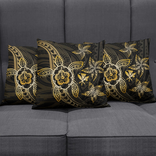 Hawaii Pillow Cover Kanaka Maoli Map Hibiscus Plumeria Turtle Art Polynesian Gold