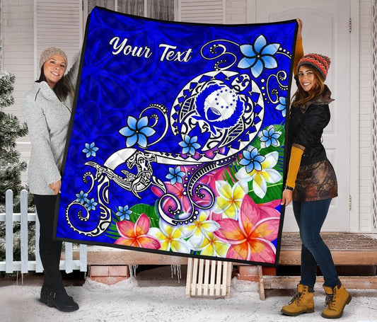 Pohnpei Custom Personalised Premium Quilt- Turtle Plumeria (Blue)