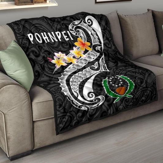 Pohnpei Custom Personalised Premium Quilt - Pohnpei Seal Polynesian Patterns Plumeria (Black)