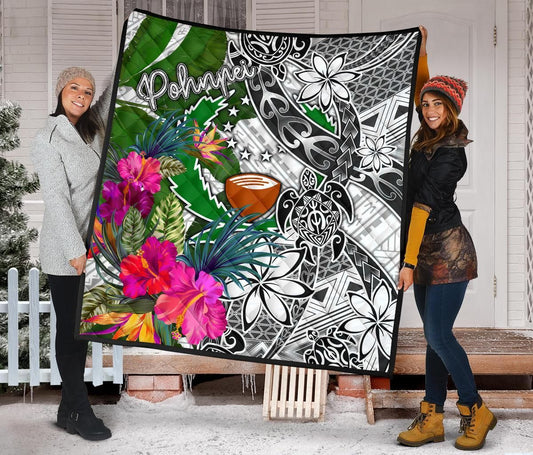Pohnpei Polynesian Premium Quilt - Green Turtle Hibiscus