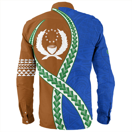 Pohnpei State Long Sleeve Shirt Flag Color With Traditional Patterns