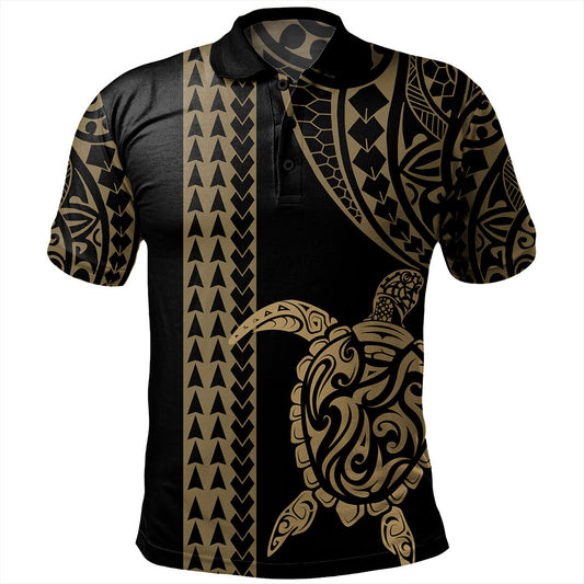 Hawaii Polo Shirt Polynesian Tribal Turtle Gold