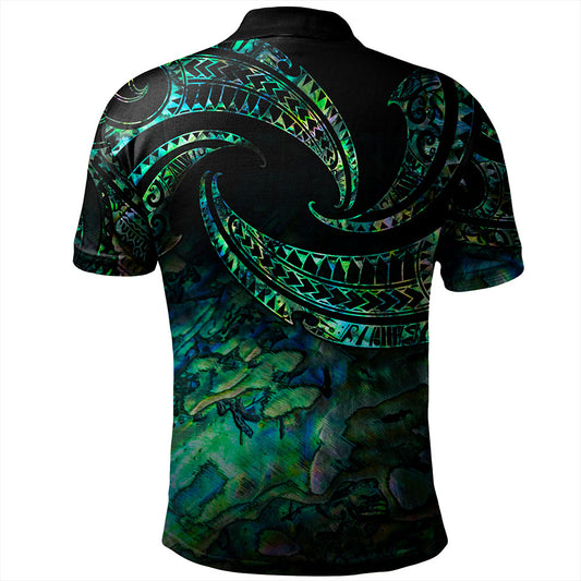 New Zealand Polo Shirt Tribal Wave Papua Shell With Map