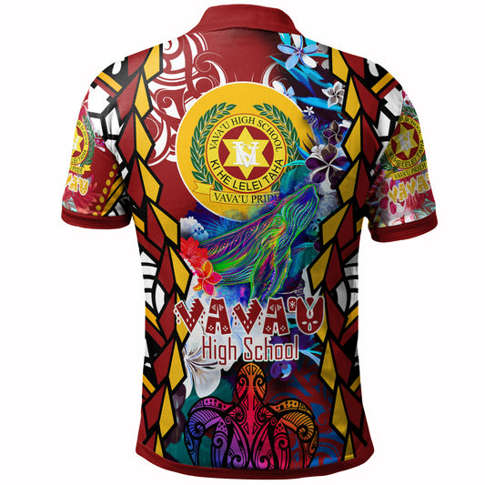 Tonga Custom Polo Shirt - Vava'u High Shool Tonga with Polynesian Patterns