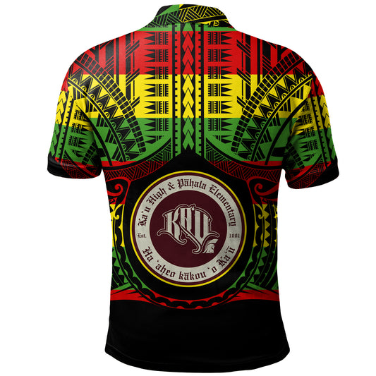 Hawaii Polo Shirt Kau High School And Pahala Elementary School Reggae Color Polynesian
