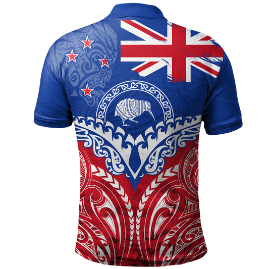 New Zealand Polo Shirt Flag With Kiwi And Maori Pattern
