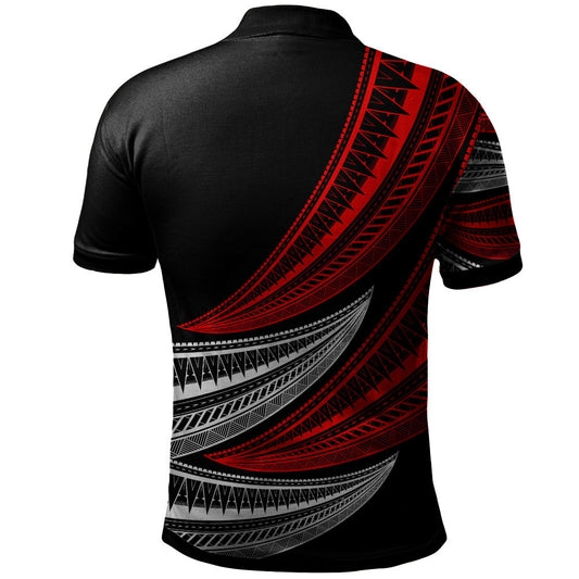 New Zealand Polo Shirt Maori Tribal Silver Fern Tattoo Style Red