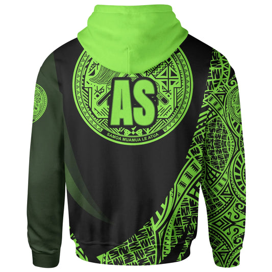 American Samoa Hoodie - Green Polynesian Patterns Sport Style